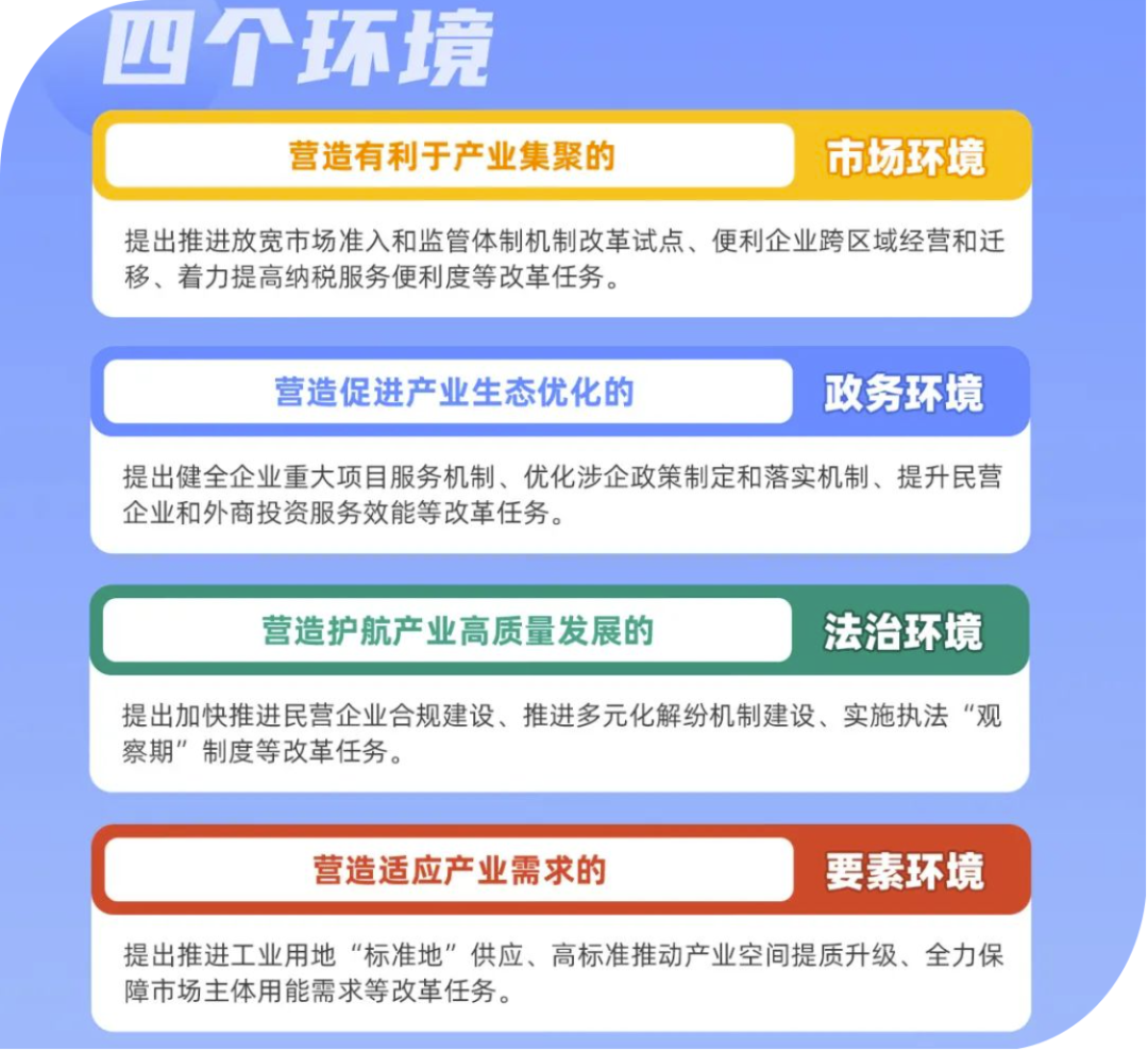 是營商環境支持一批企業共同發展的升級版。營商環境重點強調政府對單個經營主體從準入、準營、運營到退出全生命周期的服務水平,而產業營商環境更加突出區域對一類經營主體從服務鏈、產業鏈、創新鏈、資金鏈、人才鏈等全環節的供給水平。