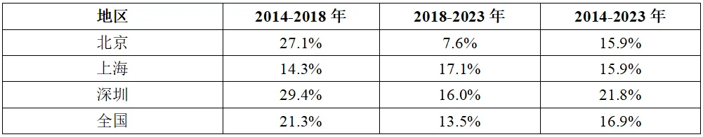 表格信息來源:北國咨根據(jù)北京、上海、深圳各協(xié)會數(shù)據(jù)整理測算