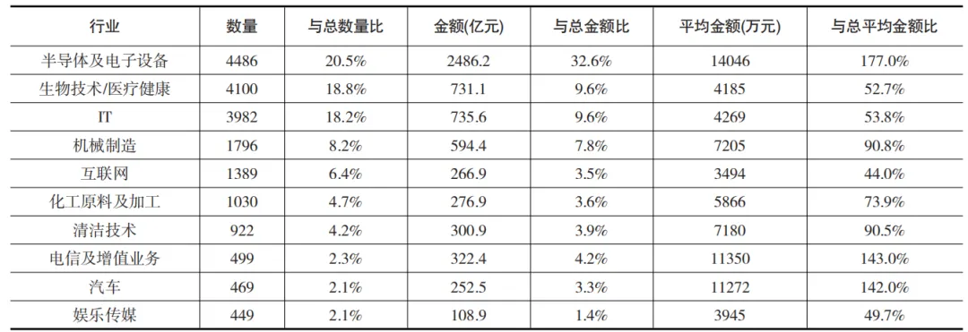 表2 2023年6月末政府引導基金投資前十大行業分布情況