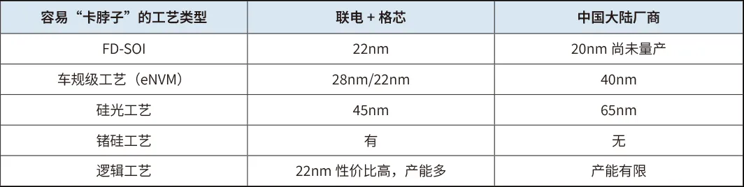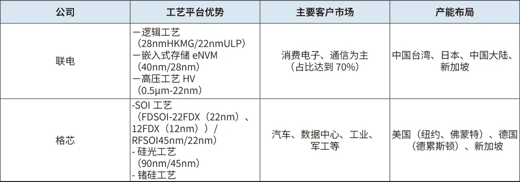 表2 聯電、格芯的工藝平臺優勢
