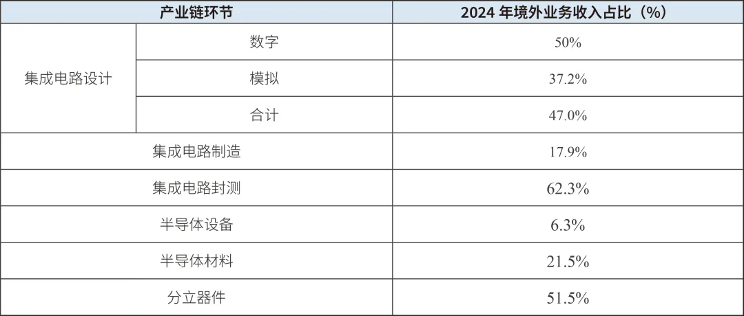 表2:集成電路各產業鏈環節上市企業2024年境外業務收入占比