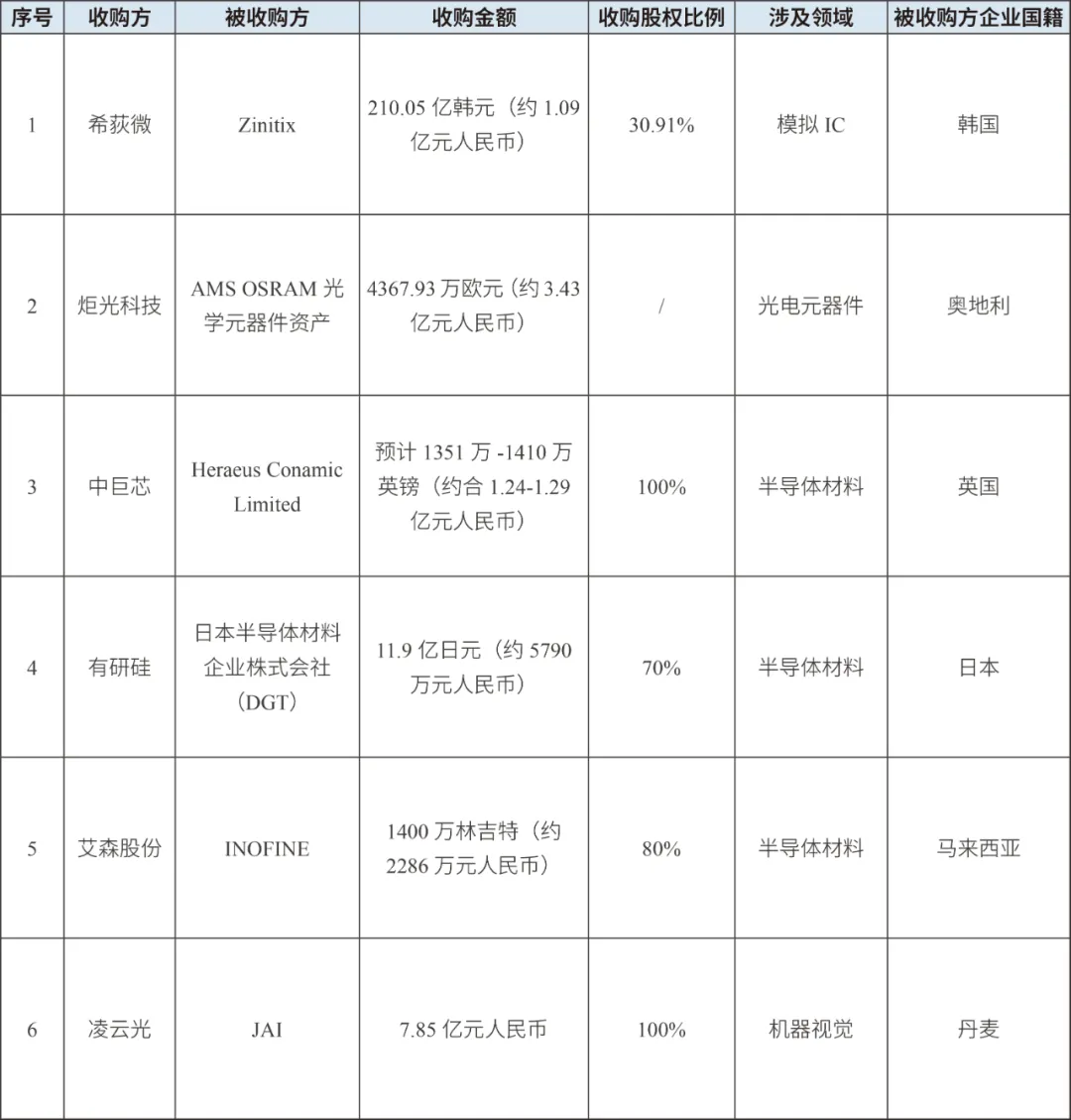 表1:部分集成電路上市企業通過收購實現“出海”