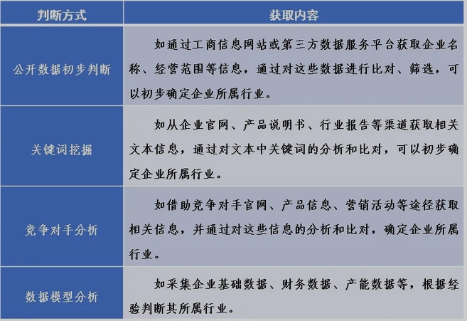 結合以上三類判斷方式,公開數據篩選可首先排除非制造業企業,再結合企業提供材料的情況用稅務信息或合同信息進行具體判斷。