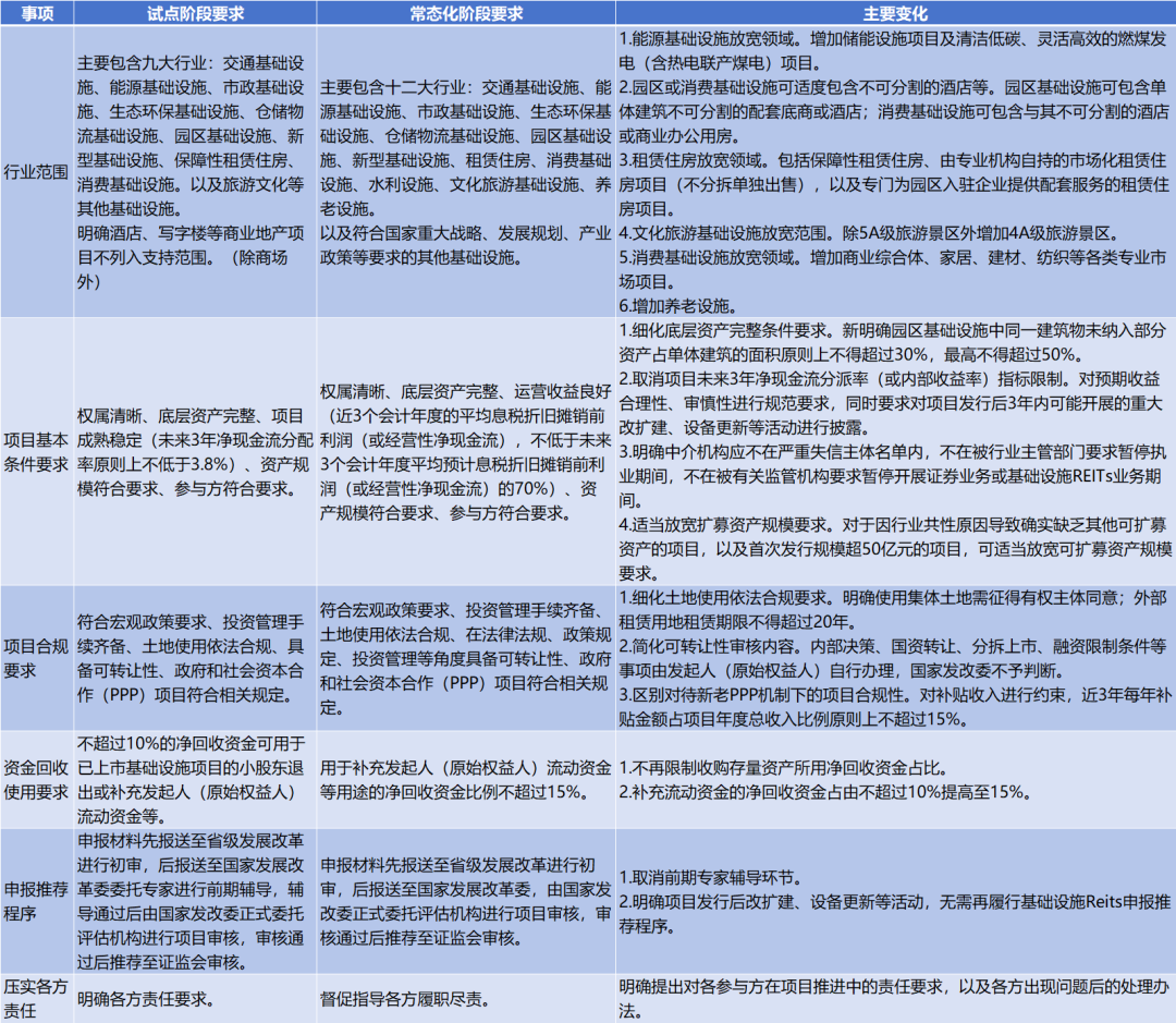 表2 基礎(chǔ)設(shè)施領(lǐng)域不動產(chǎn)投資信托基金(REITs)項目申報要求變化對比表