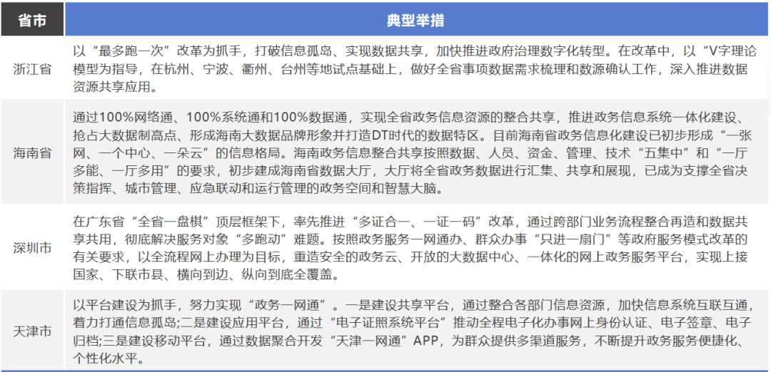 自國務院出臺《政務信息系統整合共享實施方案》以來,各地在結合其電子政務建設現狀基礎上相繼開展了政務信息系統整合共享工作(詳見表1),但也面臨政務信息系統條塊分割、數據共享不充分、管理機制不健全等問題,進一步推進政務信息系統整合、加強數據匯聚融通依然任重道遠。本文從政務信息系統基礎設施、數據、應用、功能、管理、運維、資金七個方面進行闡述,以為相關部門開展政務信息系統整合工作提供借鑒。