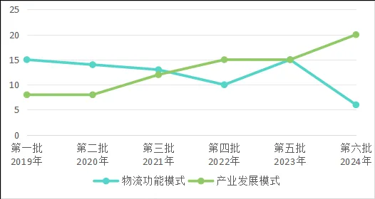陸港型、港口型和陸上邊境口岸型布局進度領先,分別為78%、87%和81%;且功能模式領先產業模式,分別為78%和66%。縱觀樞紐布局歷程,率先布局的是港口型和陸港型,均為物流功能模式。究其原因,一是此兩類樞紐具備一定的存量設施,發展基礎良好;二是作為推動中長距離大宗貨物運輸向鐵路、水路轉移等任務要求的具體體現,對優化我國物流運輸結構具有重要意義。隨著物流功能模式樞紐建設進度的推進,我國正逐步提高產業發展模式樞紐的建設。