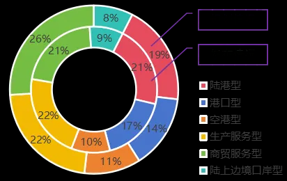 從類型看,規劃樞紐包括六類,分別是41個陸港型、30個港口型、23個空港型、47個生產服務型、55個商貿服務型和16個陸上邊境口岸型。按樞紐功能實現方式的差異性,分為物流功能模式和產業發展模式,前者依托地區交通稟賦和主通道網絡,包括陸港型、港口型和空港型;后者按照地區經濟發展路徑,包括生產服務型、商貿服務型和陸上邊境口岸型。