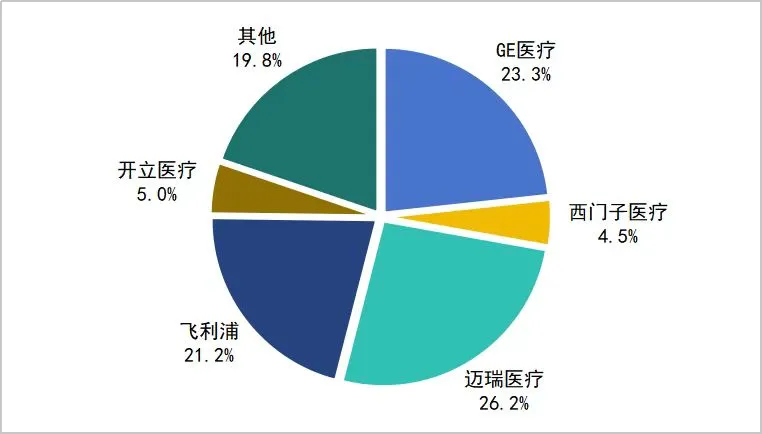 我國US市場規(guī)模約180億元,GE醫(yī)療(26%)、邁瑞醫(yī)療(24%)、飛利浦(24%)三家企業(yè)合計占據(jù)市場75%以上份額。隨著設(shè)備更新落地,國產(chǎn)品牌市場份額占比明顯提升,截至2024年三季度,US國產(chǎn)品牌占比提升至41%(邁瑞醫(yī)療26%、開立醫(yī)療5%,其他10%),GE醫(yī)療、飛利浦分別下降至23%、21%,預(yù)計2024年第四季度以及2025年上半年,隨著邁瑞醫(yī)療、開立醫(yī)療等企業(yè)參與更多設(shè)備更新采購,國產(chǎn)品牌市場份額將進一步快速提升。