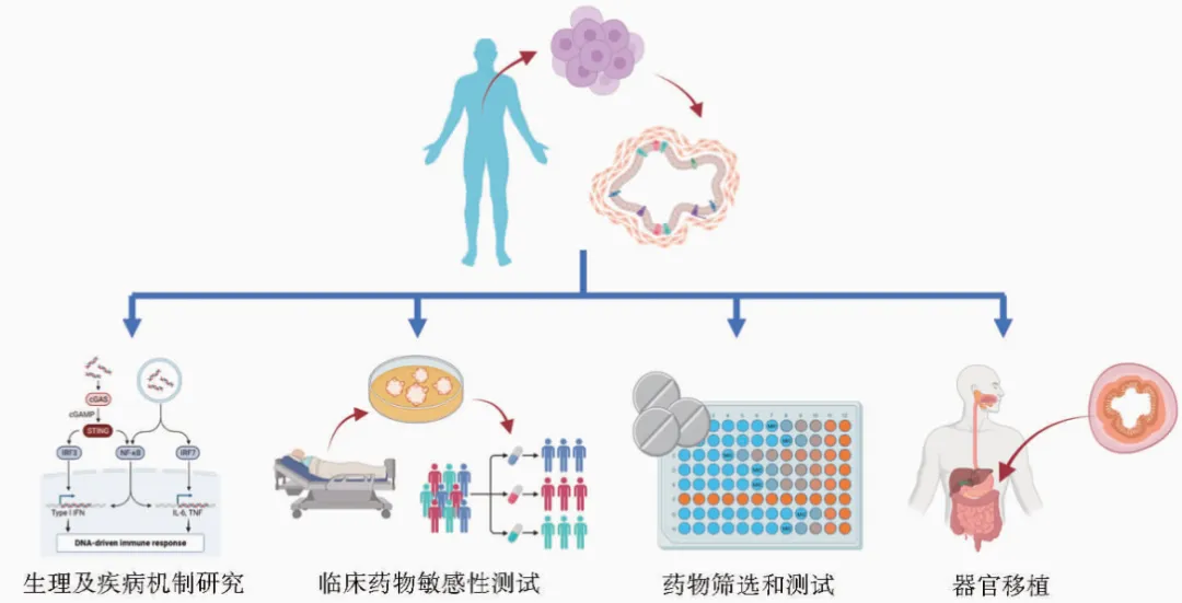 類器官模型為遺傳性疾病、感染性疾病、腫瘤治療等提供“可視化”且可大規(guī)模培養(yǎng)的實驗平臺,器官芯片可以進(jìn)一步連接多個器官模塊,模擬器官間的信號傳遞和轉(zhuǎn)移機(jī)制,識別潛在的疾病治療靶點,推動疾病機(jī)制基礎(chǔ)研究向臨床轉(zhuǎn)化?,F(xiàn)階段,已實現(xiàn)腦、肝、肺、胰腺、胃腸道等多器官正?;虿∽冾惼鞴俚哪M構(gòu)建。